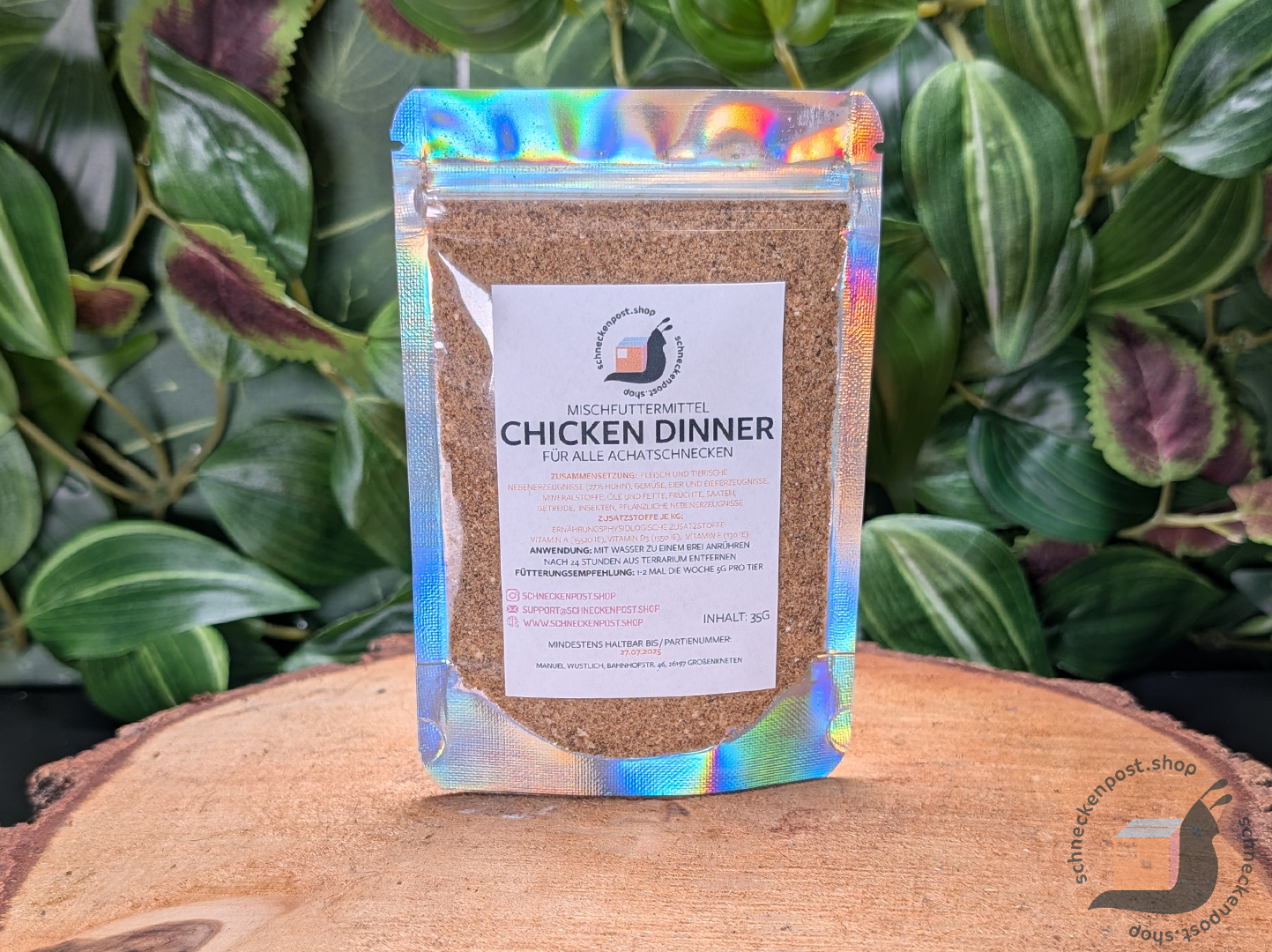 Unser Chicken Dinner ist ein sehr gern genommenes Zusatzfutter, das deinen Schnecken viele essentiellen Nährstoffe für den Aufbau ihrer Schneckenhäuser bietet.